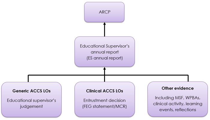 The evidence provided by a trainee and held within their e-portfolio forms the basis of the ES annual report. The ESR is reviewed by the ARCP panel which has access to all the relevant source material. The panel provides oversight and ensures a nationally consistent approach and standard when making the final summative decision about progression. A satisfactory outcome at the ARCP is required in order to progress through the training programme.